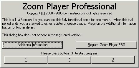 Start Zoomplayer and press 1,2 or 3 on the shareware reminder screen.
