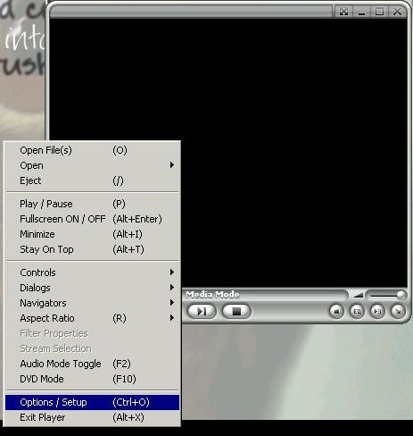 Now you should see a black screen, right click on the black screen and choose Options / Setup or simply press CTRL+O.